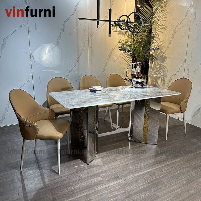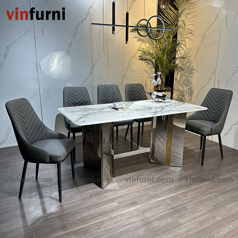 - Ghế ăn: Khung thép mạ carbon bọc da microfiber